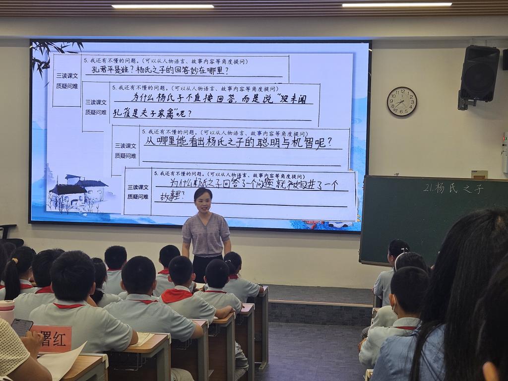 课例展示环节亮点频出。中科大附中刘群老师执教五年级下册《杨氏之子》,紧扣教材,以层层研读的方式,深研文言字词,巧妙突破教学重难点,创新解读思路;合肥实验学校刘薇薇老师的《中国古代寓言》整本书阅读课,则借助人工智能,从“知、懂、解”三个维度,为阅读教学注入新活力。两位教师通过进阶式问题链设计,引导学生从文本理解走向思维纵深处,充分践行“以学生为中心”的教学理念。