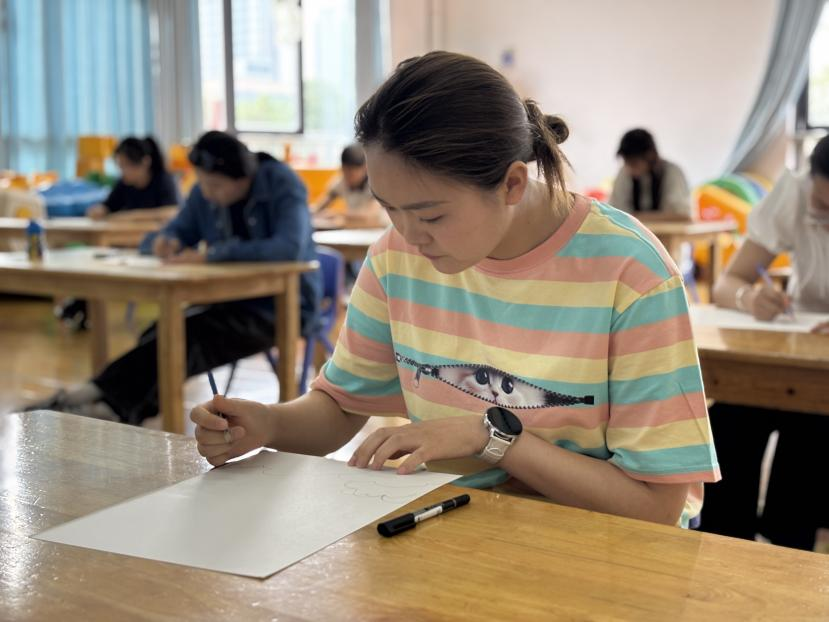 本次展示活动通过三种形式全方位检验教师的专业素养。首先教师们围绕"未来世界"主题,在十分钟内完成一幅简笔画线稿,通过灵动的线条、巧妙的构图,展现了教师对幼儿世界的理解与创造。