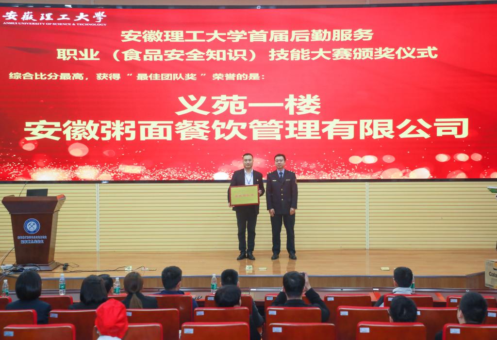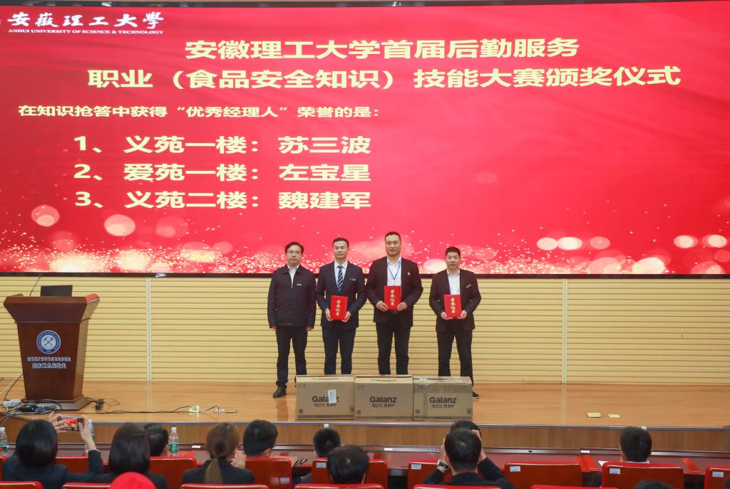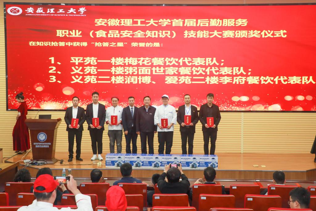 为了强化食堂食品安全保障能力,增强食堂从业人员食品安全意识,全面提升食堂食品安全管理水平,10月29日下午,总务部在国家重点实验室1号报告厅举办了安徽理工大学首届后勤服务职业(食品安全知识)技能大赛。本次大赛邀请了淮南市市场监督管理局、校党委宣传部、机关党委、学生处、校团委、保卫处等单位负责人及学生代表担任大赛评委。