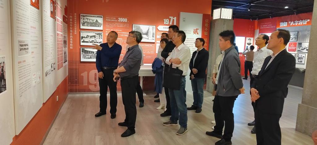 4月26日上午,江苏省高等学校后勤协会物业管理专业委员会主任、江苏科技大学党委常委、副校长周宏根等江苏省高校后勤协会物业管理专业委员会一行15人来校交流工作。安徽省高等院校后勤协会副会长、校党委常委、副校长王先江出席交流活动并陪同参观学校校史馆和校园。