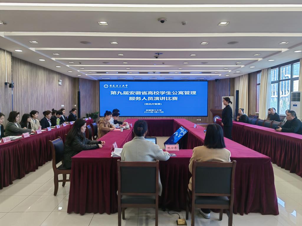 3月15日上午,第九届安徽省高校学生公寓管理服务人员演讲比赛(皖北片)复赛在我校舜耕苑二楼西会议室举行。共有来自安徽理工大学、安徽财经大学、淮北师范大学、阜阳师范大学、蚌埠医科大学等11所高校的14名选手晋级此次复赛。
