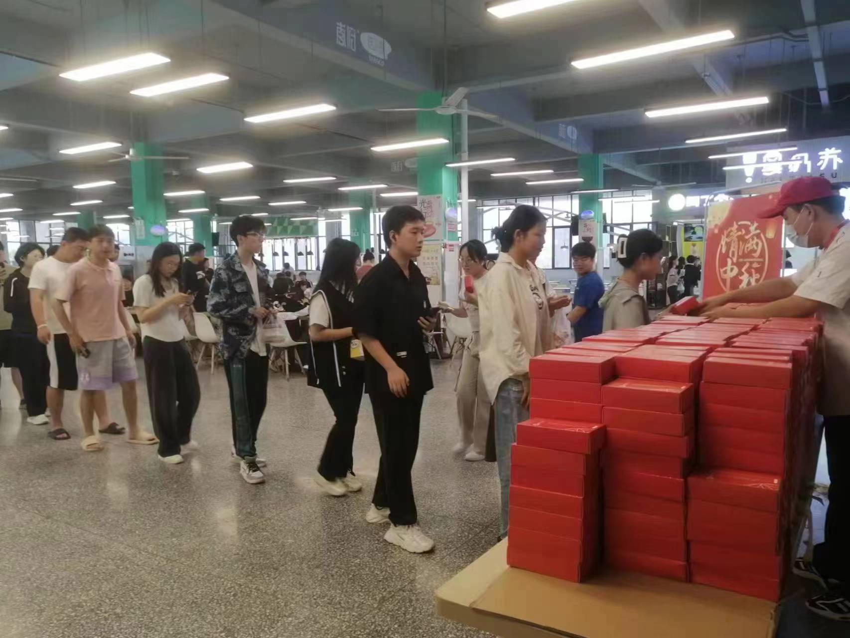 节庆期间,学校各食堂不仅为同学们推出了一系列优惠举措和美味丰盛的菜品,而且还开展了创意月饼、时令水果、多种饮品以及各类节庆小礼物的免费派送活动。仁苑餐厅为学生免费提供鸡腿2200个,每日免费提供鸡蛋、豆干、肉丸子等菜品;爱苑餐厅推出6种特价菜,还专门烧制600斤红烧肉菜品免费供应给学生;义苑餐厅推出红烧鸡腿、红烧鸭腿、红烧大排等菜品“1元购”活动,累计供应4000份;平苑餐厅推出1元烤鸡腿特价菜、2元特价红烧肉菜品等活动。节庆期间,各食堂共为学生免费发放精美创意月饼4万余块,部分同学通过抽奖券还免费获得了月饼大礼包。