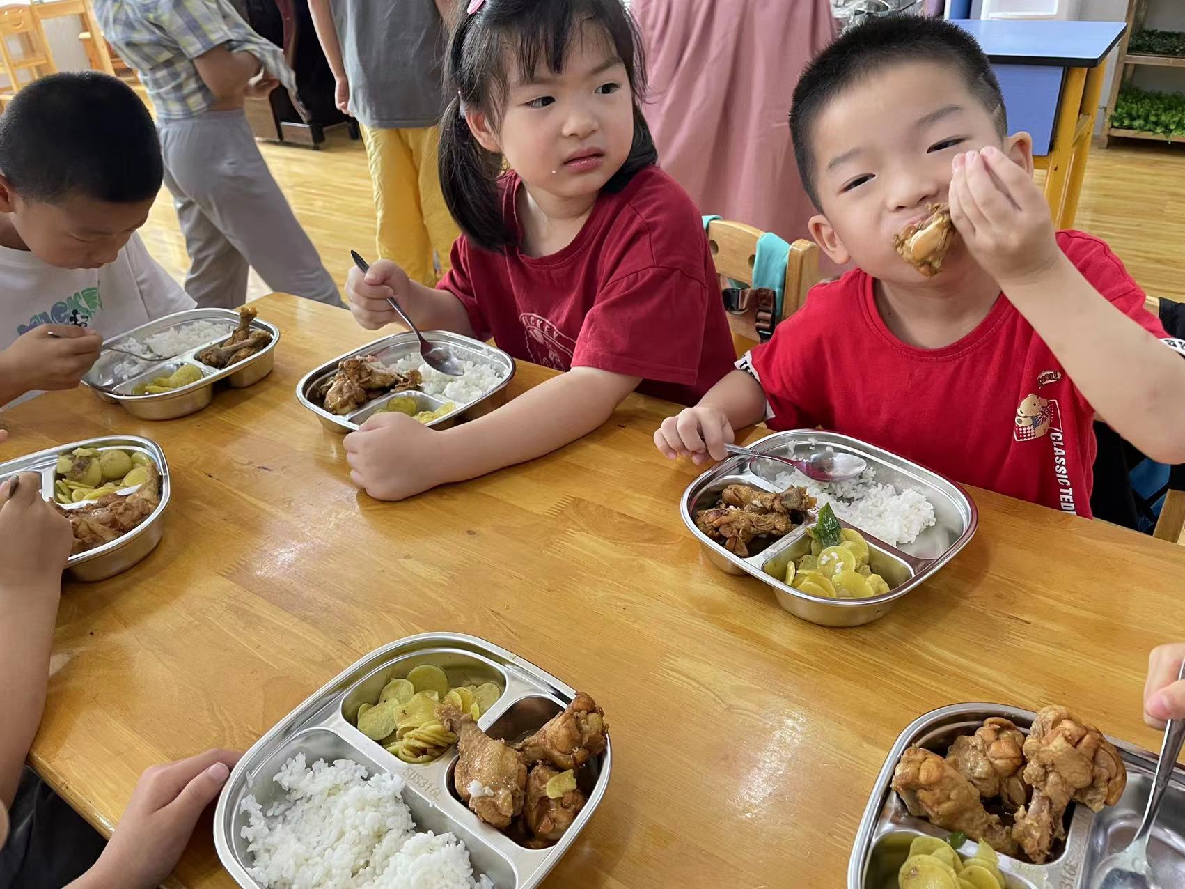 在幼儿园,为保障用餐安全,幼儿园厨房按照最新的食品安全管理规定进行了装修改造,配置了分装餐盘,餐品供应更安全、更丰富。此外,组织对楼道墙裙更换,校园绿植修剪,室内环境保洁消杀等,为幼儿们创造更舒适的在园生活环境。
