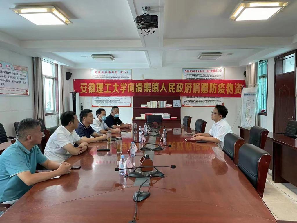 按照学校乡村振兴定点帮扶工作部署,7月28日上午,总务部党委书记侯辉、部长张亚一行5人赴临泉县滑集镇开展捐赠帮扶活动,为当地送去50000只口罩、300瓶消毒液和100件防护服,助力地方疫情防控。