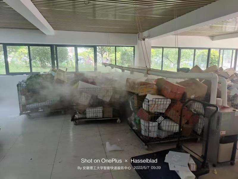 5月2日,学校先行恢复了邮政、京东、顺丰等防疫措施较好的快递,为逐步恢复其他快递服务积累经验,做好准备。快递车辆到达学校西门时,首先进行全面消杀,在车门和车窗贴上封条,确保与校内人员“零接触”。车辆到达快递中心,由消杀人员对货物进行第一遍全面喷雾消杀,卸货时按照所有快件均不能落地原则,卸到笼筐中。再由消杀员将笼筐中的快件逐一放置到专用消杀机进行细致的全雾化消杀,确保每个快件都消杀到位。消杀完毕后,将消杀后的快件静置半小时,再由工作人员进行区域分拣操作。取件时,必须佩戴口罩,及时对快件内外部进行再次消杀,快件外包装投入就近的垃圾回收处,不得将外包装带到宿舍,最后用免洗手凝胶对手进行消毒清洁。充分利用智能快递柜,采取无接触方式取件。