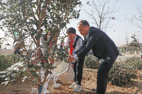 植树间隙,郭永存叮嘱相关部门负责人,要认真贯彻落实习近平总书记关于开展好全民义务植树工作的重要指示,深入践行“绿水青山就是金山银山”的理念,抢抓当前种树植绿的大好时节,科学规划,合理布局,营造氛围,动员全校上下开展植树造林活动,为营造绿色校园尽一份心、出一份力。