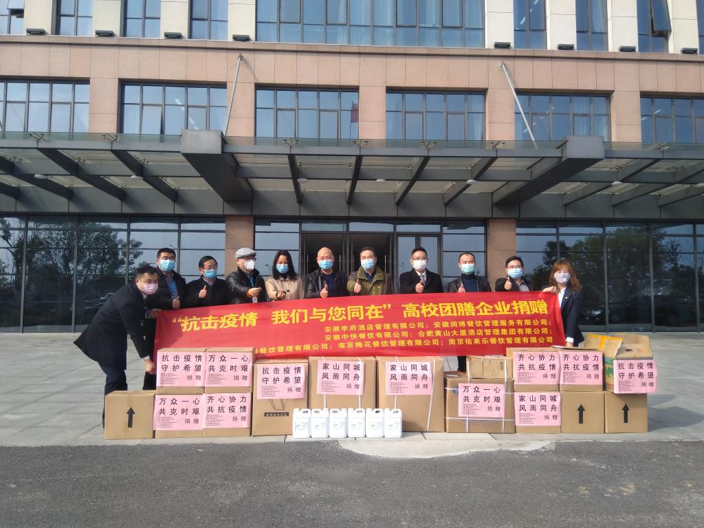 吴照明对7家餐饮服务企业的爱心捐赠表示感谢,对各企业为学校提供的餐饮服务、与学校并肩作战的社会责任感表示肯定。他指出,学校一直以来高度重视餐饮服务工作,在安徽省第一批次出台《学生食堂饭菜价格平抑基金使用和管理办法》《学生食堂考核奖励办法(试行)》,并按时兑现落实,为各企业创造良好的条件。希望各企业制定可行的疫情防控预案,开展员工健康管理和防控知识培训,做好物资储备,谋划食堂消毒、学生返校就餐方式等,确保学生返校后的餐饮安全。