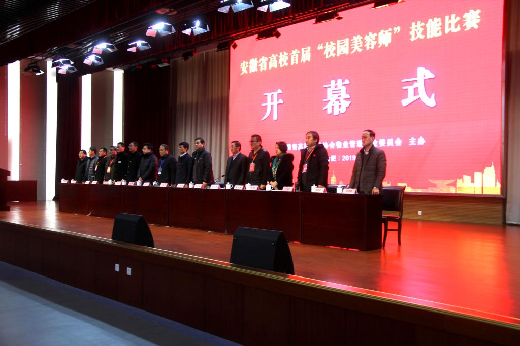 12月29日,安徽省高校首届“校园美容师”技能比赛在合肥工业大学翡翠湖校区隆重举行。合肥工业大学副校长季益洪、安徽理工大学副校长吴照明、宿州学院副校长梁琦、池州学院副校长王延寿、安徽省教育厅高校后勤管理中心主任陈鹏出席了比赛开幕式。开幕式由省物专会主任、安徽理工大学总务部部长洪江如主持。