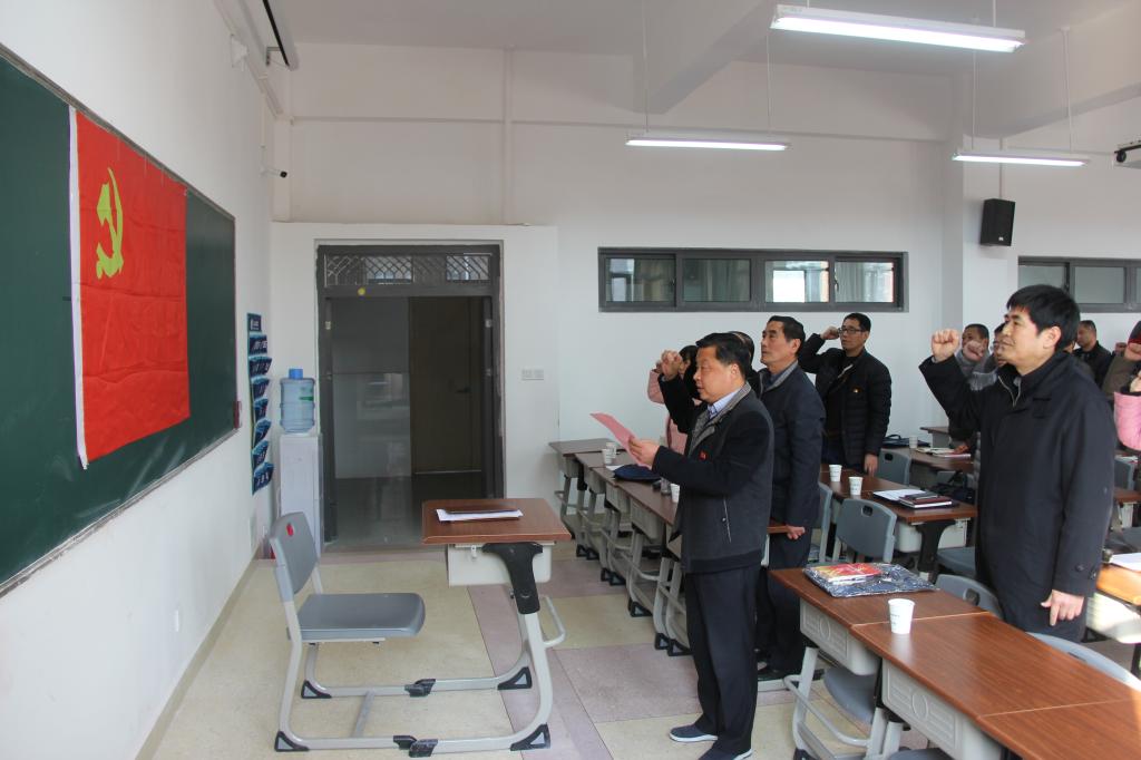 开班前,秦朗带领全体党员面对党旗一起重温入党誓词。在秦朗的领誓下,所有党员举起右拳,庄严宣誓。