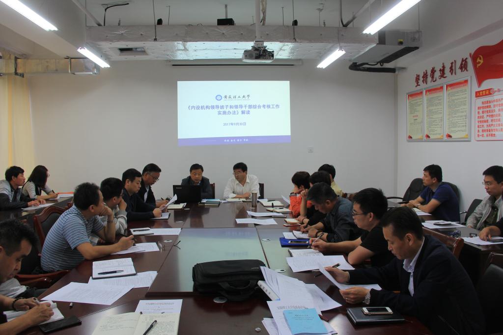 9月30日上午,后勤保障部召开会议,学习解读《安徽理工大学内设机构领导班子和领导干部综合考核工作实施办法》精神。部长张勤春主持会议。
