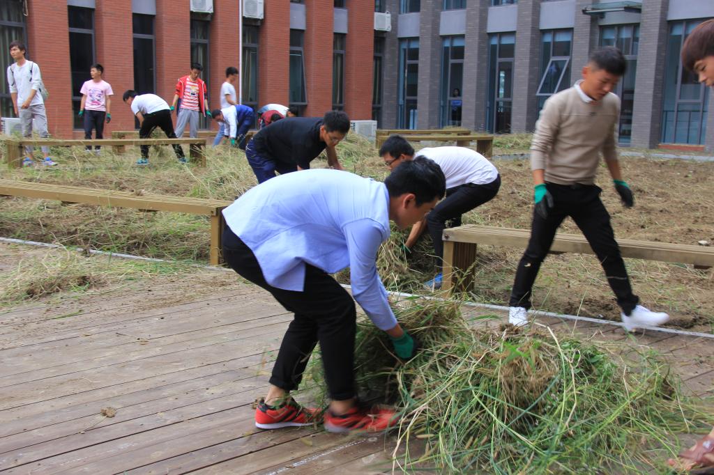 师生清理绿化带垃圾(摄影:学生记者提供)