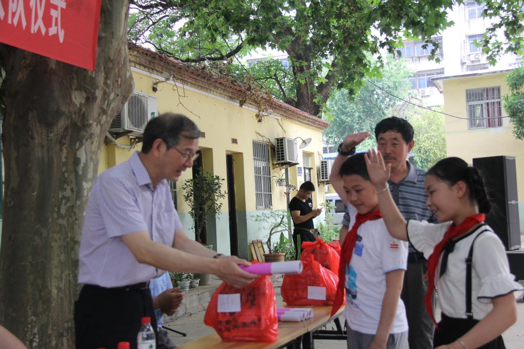 王其东为各年级荣获“三好学生”、“优秀少先队员”的小学生颁发了奖状和奖品,并叮嘱小学生们要倍加珍惜此刻的荣誉,继续努力学习,拼搏进取,为胸前的红领巾增光添彩,以更加优异的成绩回报母校,报效祖国。