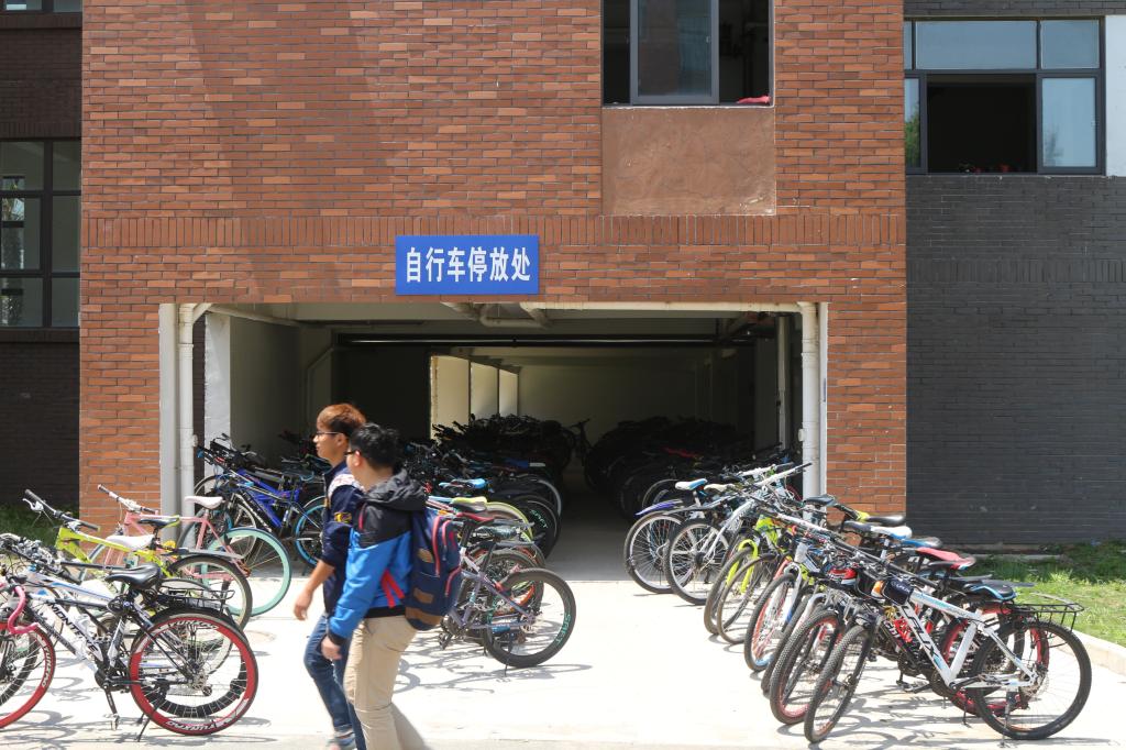 宿舍楼下的地下车库,自行车整齐地摆放在两侧。“在北校区和校本部的时候,自行车即便锁上了也不安全。现在到了新校区,车子停在地下室就行了,看到地下室装好的摄像头,心里很安心。”能源与安全学院的吴方文同学说。