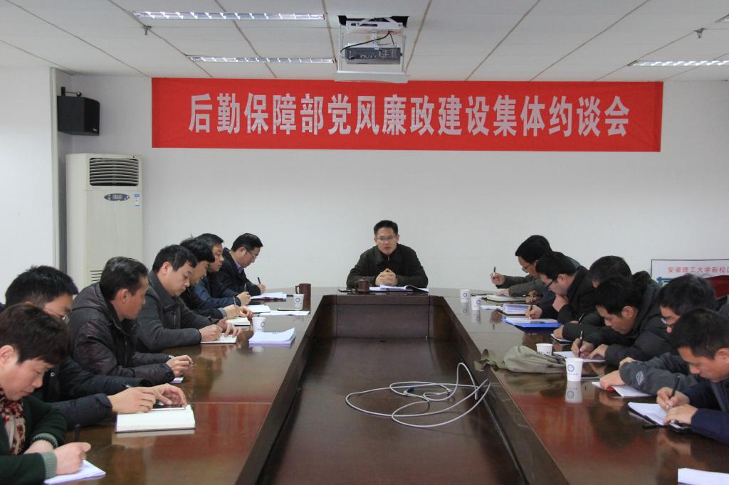周峰分析了当前高校后勤系统党风廉政建设面临的形势,传达了省纪委和省纪委驻省教育厅纪检组发文通报的省内高校后勤系统违规违纪案例,通报了我校在被巡视、审计期间发现的后勤的有关问题,对后勤保障部今后党风廉政建设工作提出了要求。