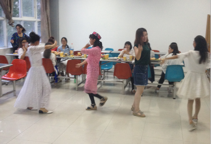 后勤集团在广泛征求学生意见的同时,为新疆籍学生精心准备了菜色丰盛的晚餐,让在外求学的新疆籍学子深深地感受到家的温暖,浓浓的情意让他们沉醉在节日的欢乐中。学生们伴随着悠扬的乐曲,跳起优美的舞蹈,时而是激昂的边疆风情,时而是低缓的恋人情歌。清真餐厅的工作人员也和同学们一起欢度佳节,一片欢乐祥和、其乐融融的景象。
