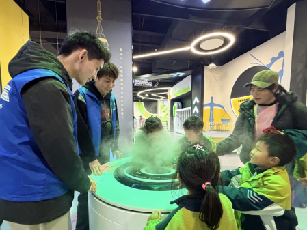 大家在各展馆进行观摩,在“好奇乐园”进行亲子互动,在“万物之理”感受科学奥妙,孩子们在动手操作中点燃了求知热情。随后,科普员带来科学小课堂,趣味实验秀将抽象原理化为神奇现象,引得阵阵惊叹。